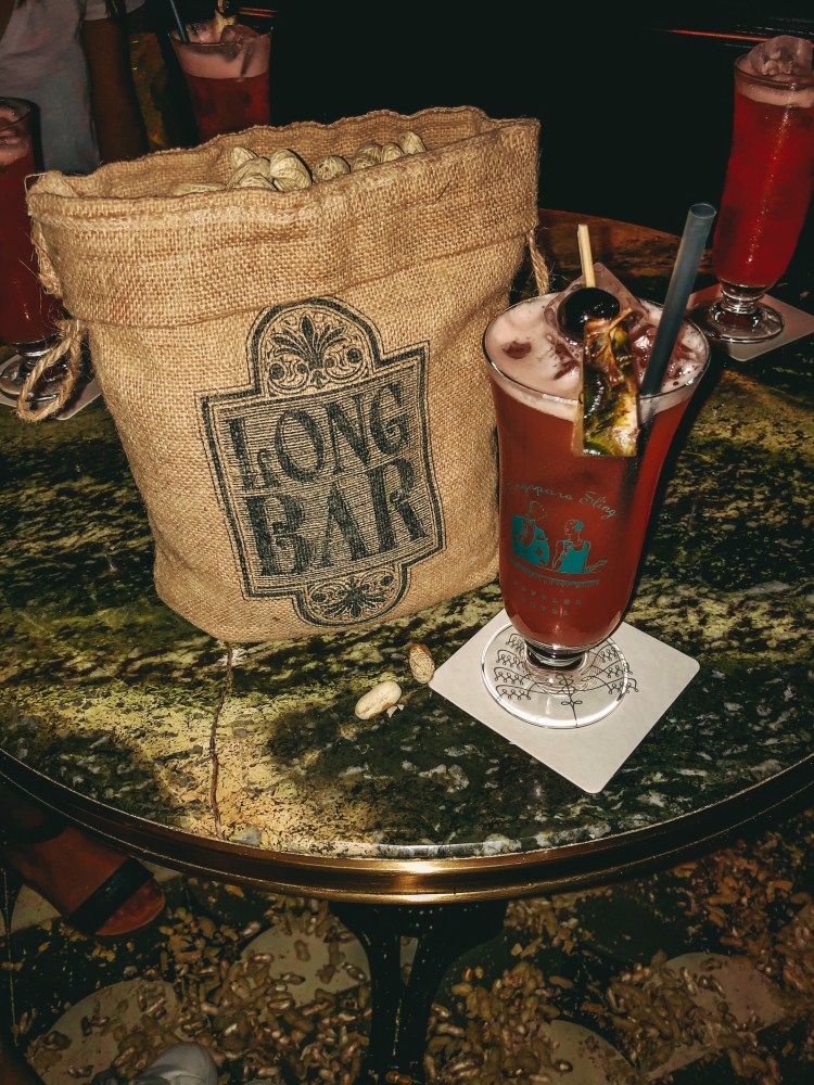 At each table is a free bag of peanuts for you to snack on while you enjoy your Singapore Sling. You’re actually encouraged to litter (compared to literally everywhere else in Singapore where you’re not allowed to), so you just crack the peanuts open, eat the nut, and throw the shells on the floor.