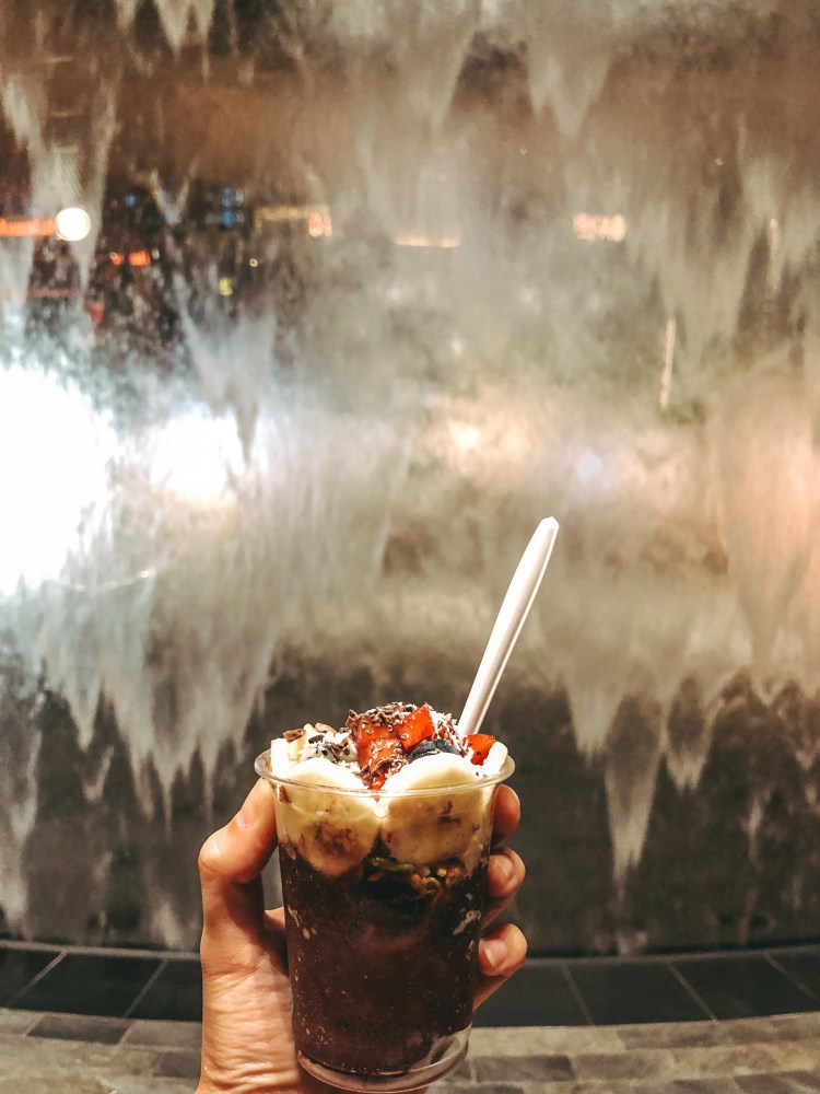 Throughout the night, I explored the multiple terminals of Changi Airport. I watched Shazam at the movie theater, ate Shake Shack and an açaí bowl, took a quick hour nap, walked around to multiple gardens, and found out that with the purchase of $10 or more, you can slide down a large slide.