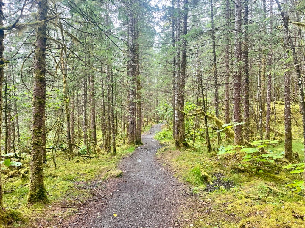 Unlike West Glacier Trail, the East Glacier Trail is a more moderate trail that begins at the Visitor Center. It is a 3.5 mile loop, with around 750 feet elevation gain, that allows you to get much higher than you would at any of the trails above and the Visitor Center, for some great views of Mendenhall Lake and the glacier itself. The trail goes through a temperate rainforest with beautiful mossy old-growth trees, and there are opportunities to see wildlife as well.