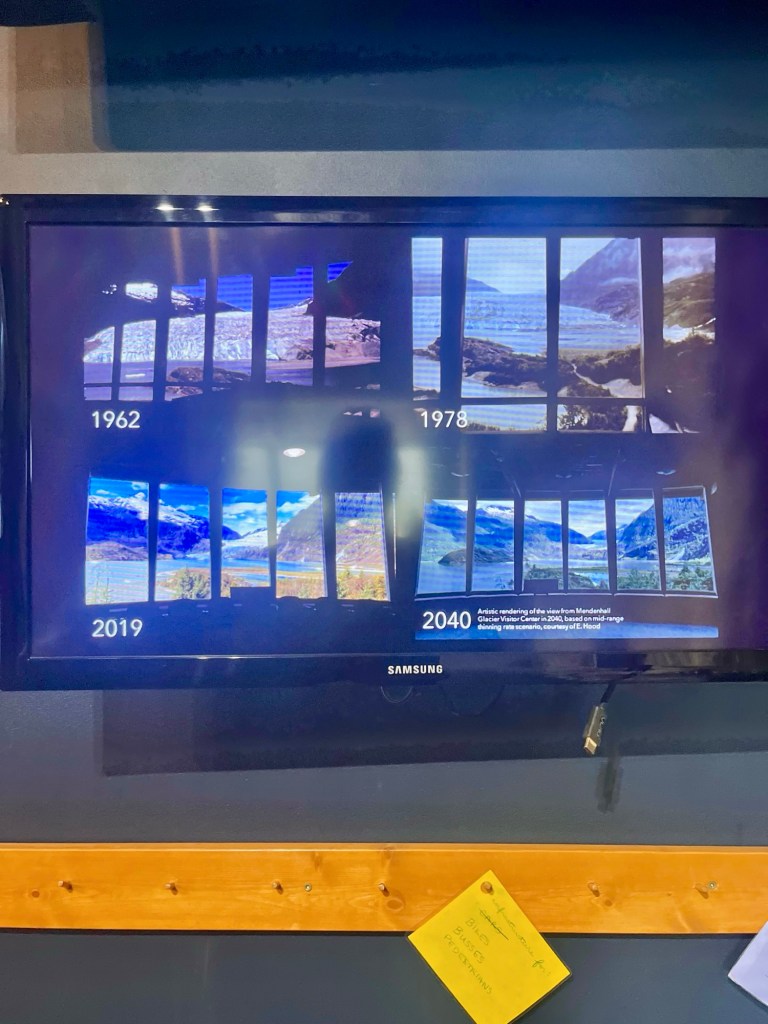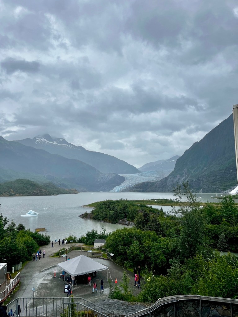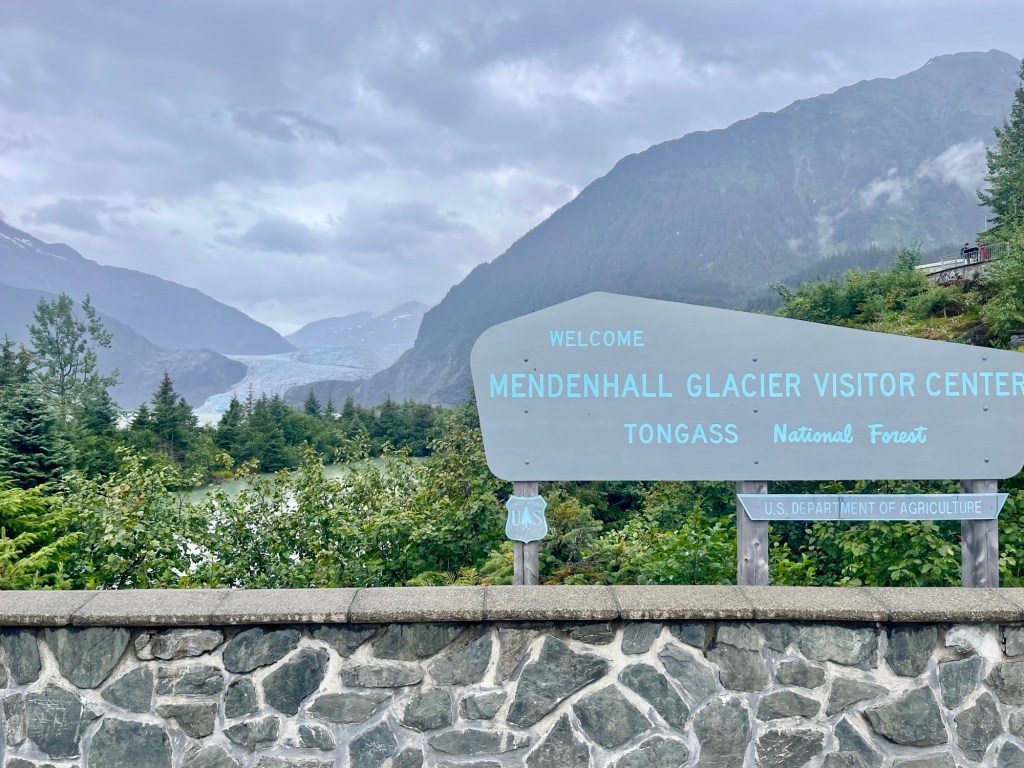 The Visitor Center at the glacier is also top-notch; definitely recommend checking it out for a bit if you have the time. You can learn a lot more about the history of the glacier itself, as well as the plants and animals that are in the area. Glaciers are something that really interest us, so itās always fun to learn about how glaciers form or any glacier facts in general, and the visitor center does a great job of explaining that to a non-scientist! There are also some great views of Mendenhall, as well as Mendenhall Lake that the glacier flows into as well.