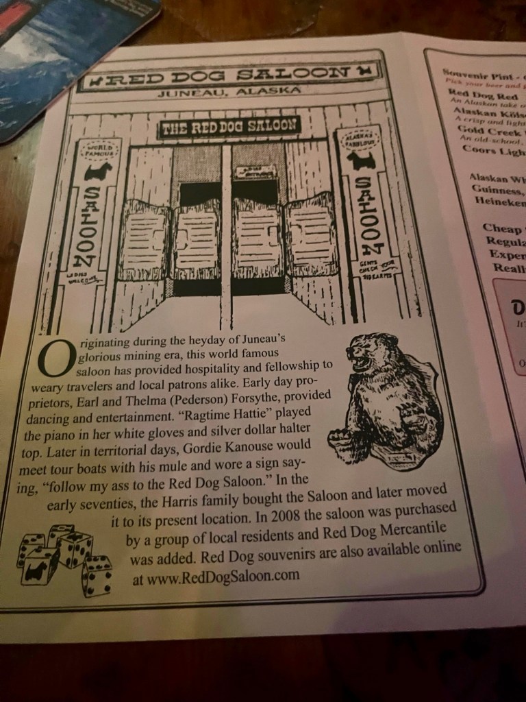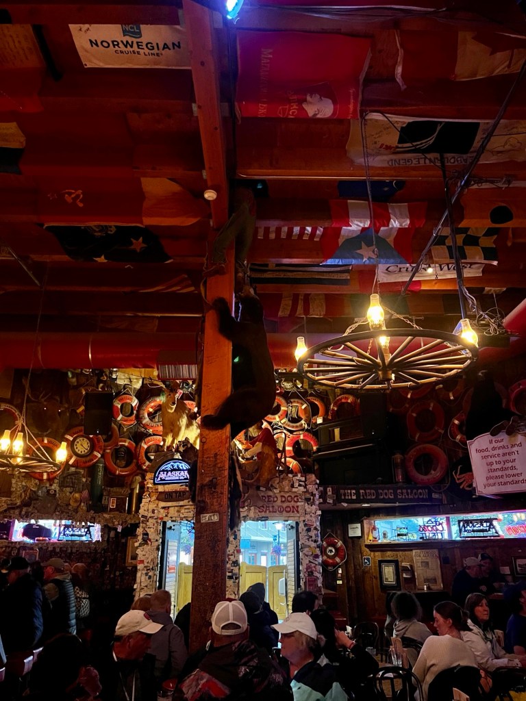 The Red Dog Saloon is a historic bar in downtown Juneau, Alaska, that was opened in the late 1800s, during the Klondike Gold Rush. Nowadays, the saloon has a very āwild westā type atmosphere, with sawdust-colored floors, mining relics, and animal heads all over the walls. It certainly is a touristy place, but it is one of those touristy places that actually feels worth it to check out. The ambiance and live music definitely lead it to be the most lively bar you can find in Juneau.