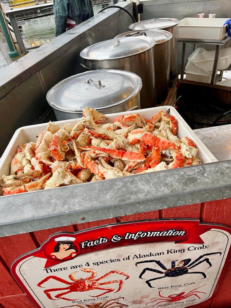 Time to get fresh crab legs and thereās no better place than Tracyās King Crab Shack. You can see the giant vats of boiling water ready for cooking as they continuously bring in more fresh crab theyāve caught daily. Whether itās by the bucket, basket, crab cakes, or crab chowder, we ended up coming back here a few times because it was just so good. My family loves getting king crab legs from Costco and I was surprised to find out theyāre actually caught from Juneau!