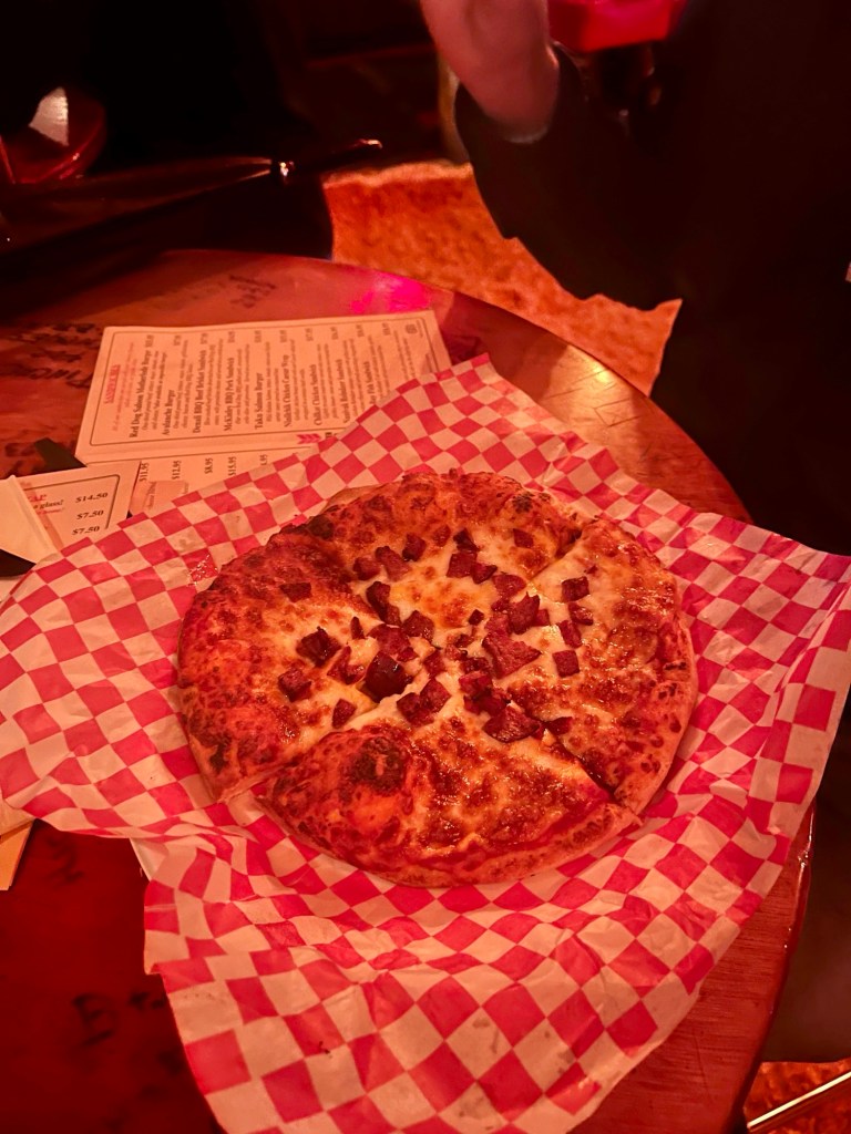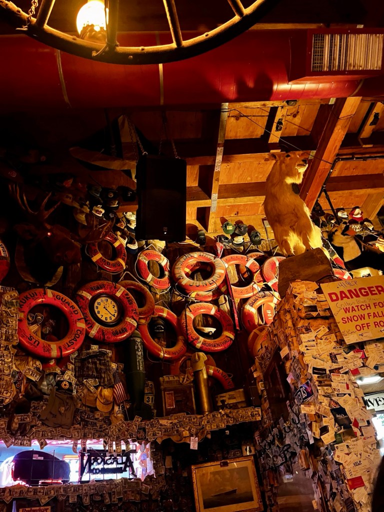 The saloon also has a signature drink, the Duck Fart (a shot with Kahlua, Baileys Irish Cream, and Crown Royal whiskey). There are also some fun Alaska-themed foods to try, and it is the first place that we tried reindeer (sausage on a pizza), which was surprisingly good (sorry Rudolph :().