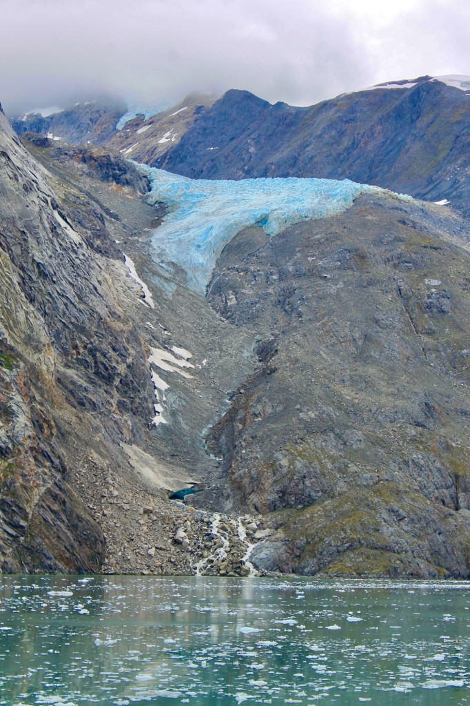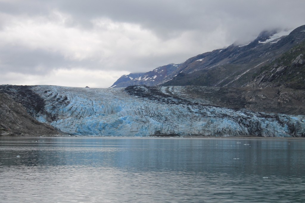 We have finally arrived to our first tidewater glacier! Although we weren’t going to be approaching the face of this glacier as close as the final ones, this glacier is a sight to see at a distance. It originates in the Brady Icefield and its main characterization are the deep crevasses you can see running down.