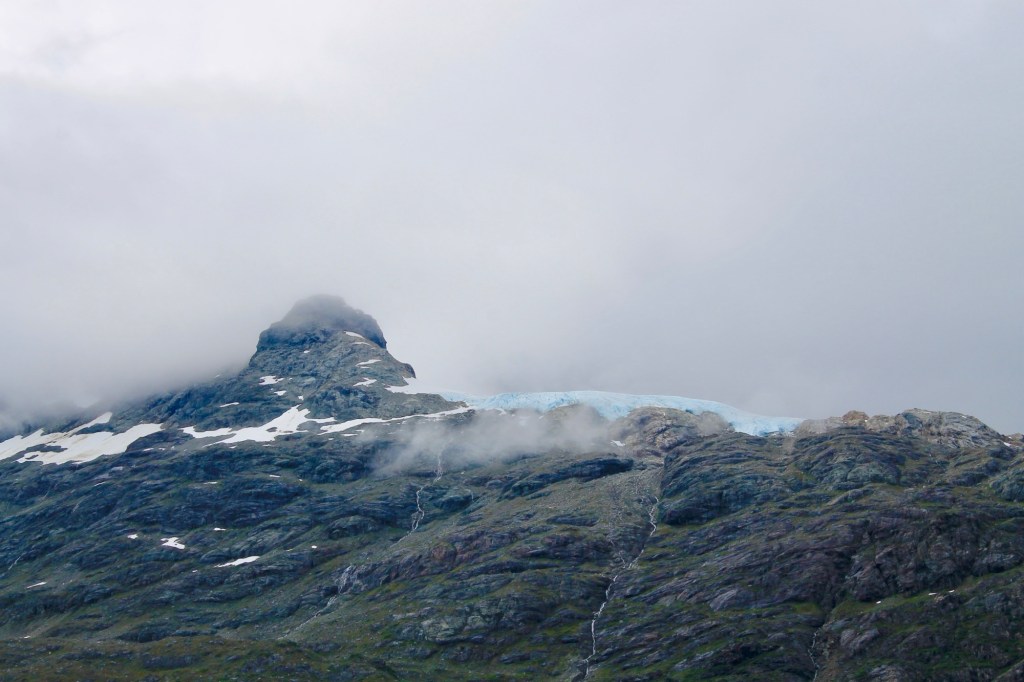 Over time, fjords are formed by glaciers through a process of intense erosion. As a glacier moves slowly down a valley, it erodes the landscape beneath it. The glacier grinds against the rock below, picking up rocks and sediment, deepening and widening the valley below it. Glaciers create deep, steep-sided U-shaped valleys, creating high cliffs that you see throughout the park. Later in the warmer seasons, the glacier retreats, melting and pulling back, and seawater floods the valley, creating a fjord.