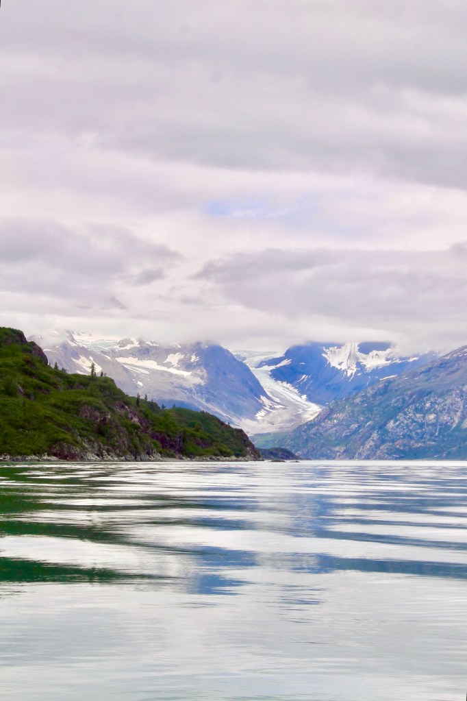 The boat tour takes you up Glacier Bay to view glaciers, mountains, and wildlife. While it is a full day tour, it absolutely flies by with how much wildlife and beautiful scenery you’ll see. The boat travels the entire length of the West Arm of Glacier Bay National Park & Preserve to the face of many tidewater glaciers. There will be two routes you can take to see the main three tidewater glaciers: left to John Hopkins Glacier or right to Margerie Glacier and Grand Pacific Glacier. We went left!