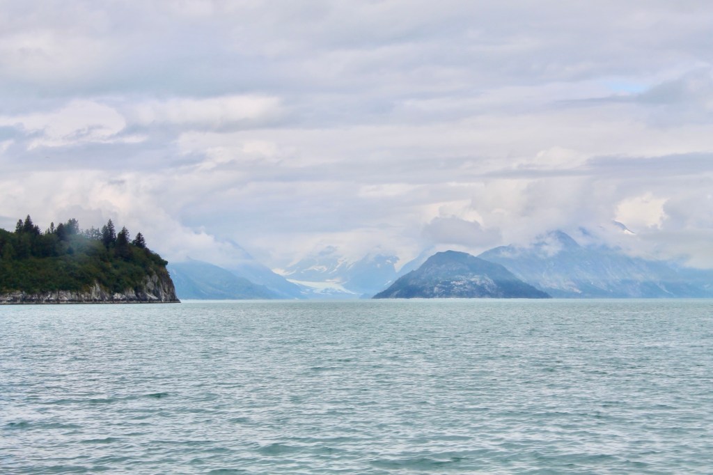 As we sailed up into Glacier Bay at the Sitakaday Narrows, the views As we sailed up into Glacier Bay at the Sitakaday Narrows, the views were unfortunately all fog. While it was discouraging to see only fog around us, our park ranger tour guide reassured us that this was common and that we would have better visibility soon for the glaciers and wildlife. We didn’t see anything until we reached South Marble Island, about an hour into our tour.