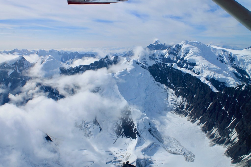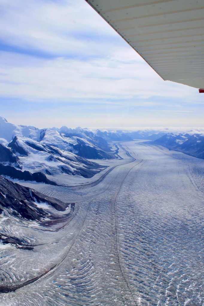 It is hard to describe the flight-seeing experience in words, but this is our best attempt! The 1.5 hour flight felt like 10 minutes. At first, it was nerve-wracking to enter into the small floatplane, knowing that we were about to fly near some of the tallest peaks in the world, but the professionalism, experience, and humor of our pilot helped us focus on the beautiful scenery surrounding us from the second we took off.