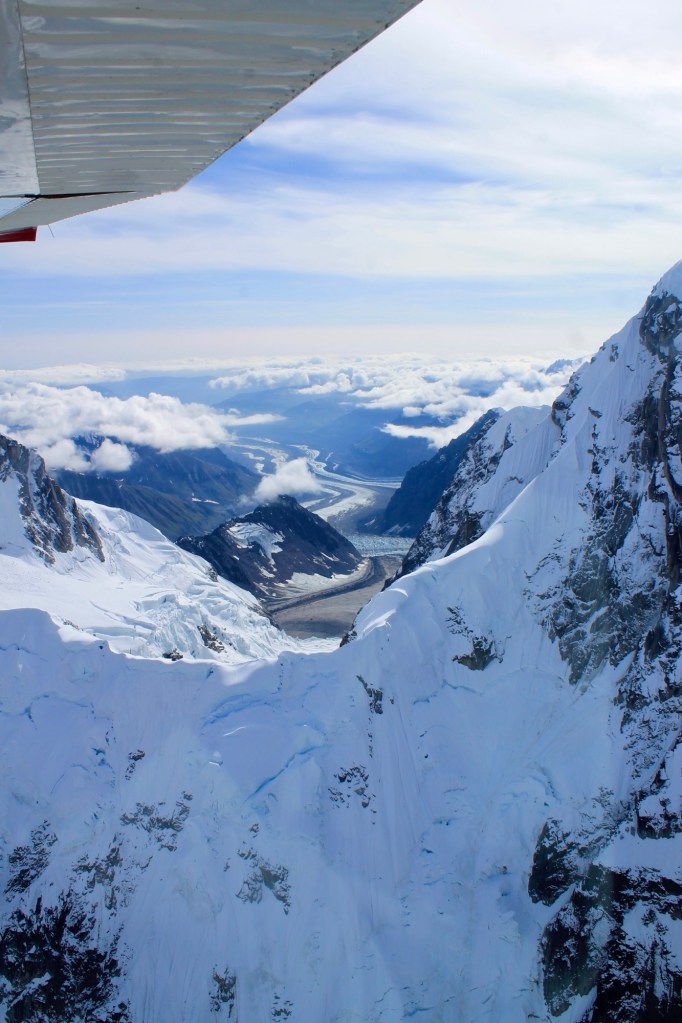 Flying so close to the mountains and being able to see the glaciers and crevasses from above really gives you another perspective of how extremely massive they are. I feel like itās hard not to get messed up by depth perception when youāre viewing the mountains on the ground from a distance versus above.